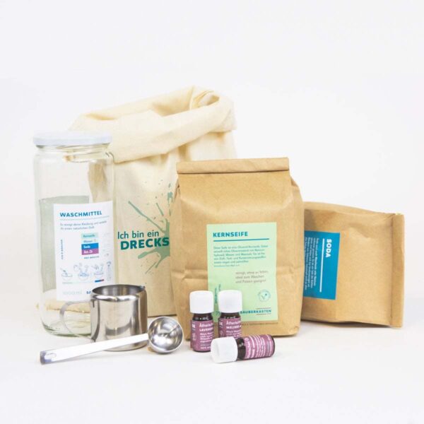 In diesem Set ist alles drinnen, was du brauchst um deine eigenen Reiniger zu mischen. Es beinhaltet eine Rezeptkarte, Messutensilien, Etiketten, und Zutaten für 10 verschiedene Reiniger.
